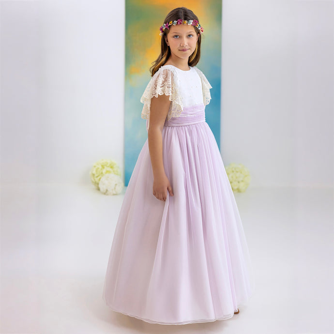 Sencillez, distinción y frescura definen el estilo Romántico en vestidos de comunión.