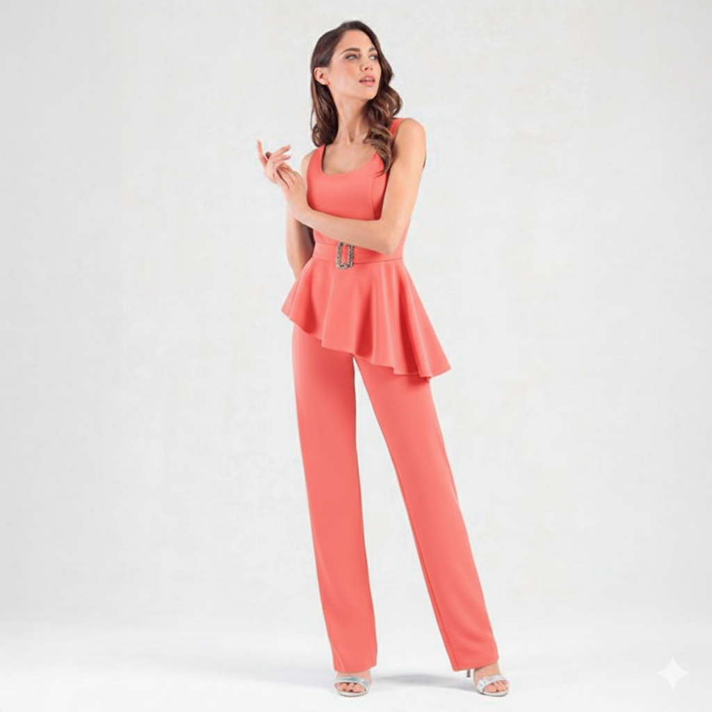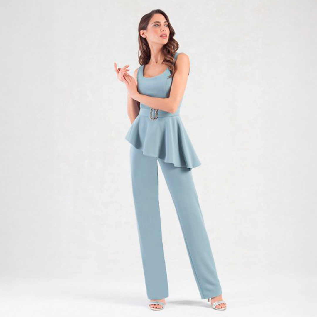 Este mono liso popelin, tirantes ancho, pata recta, con volante desde cinturón, posibilidad de quitarle.