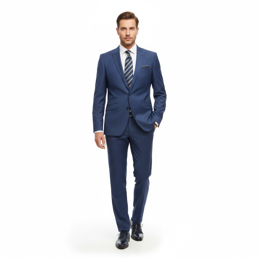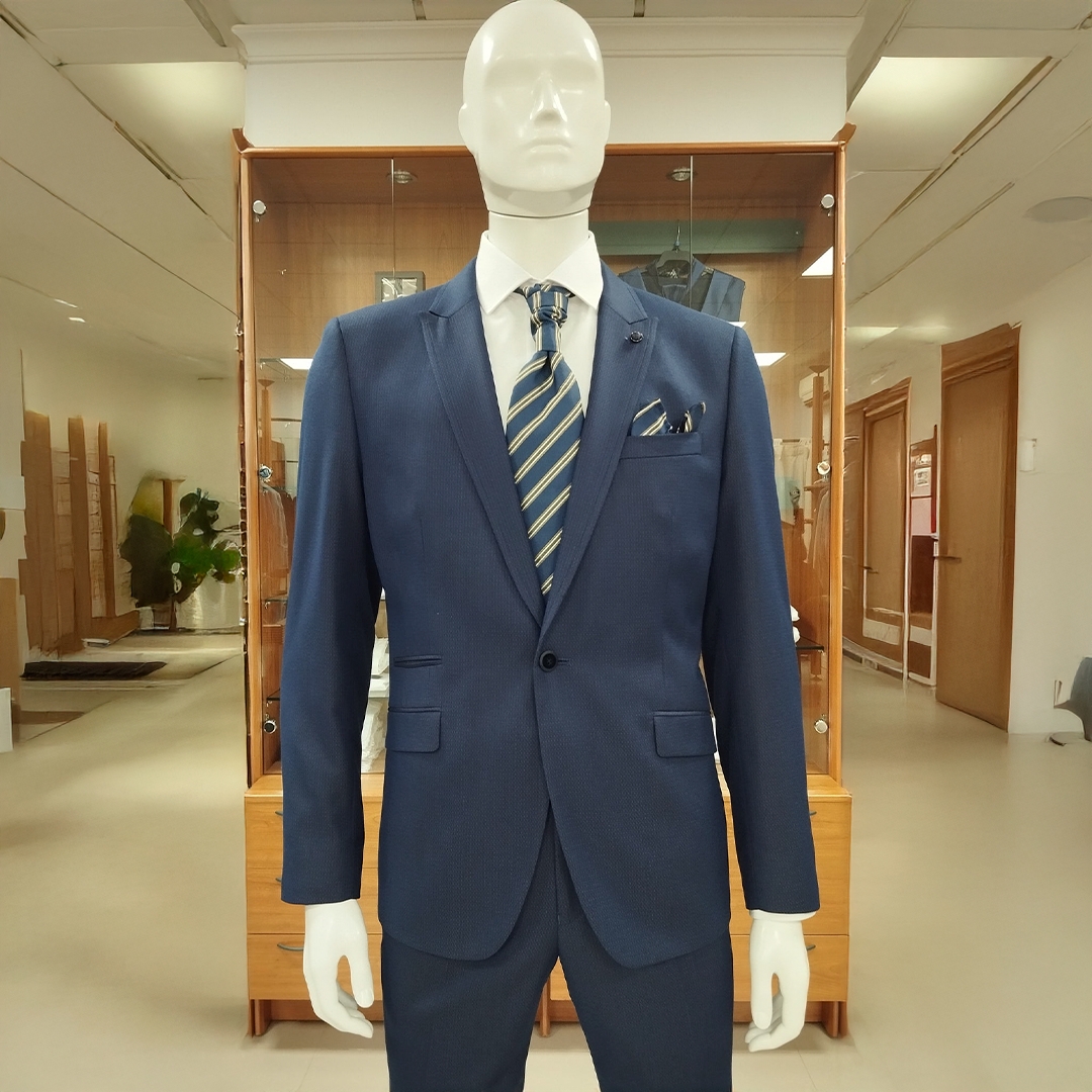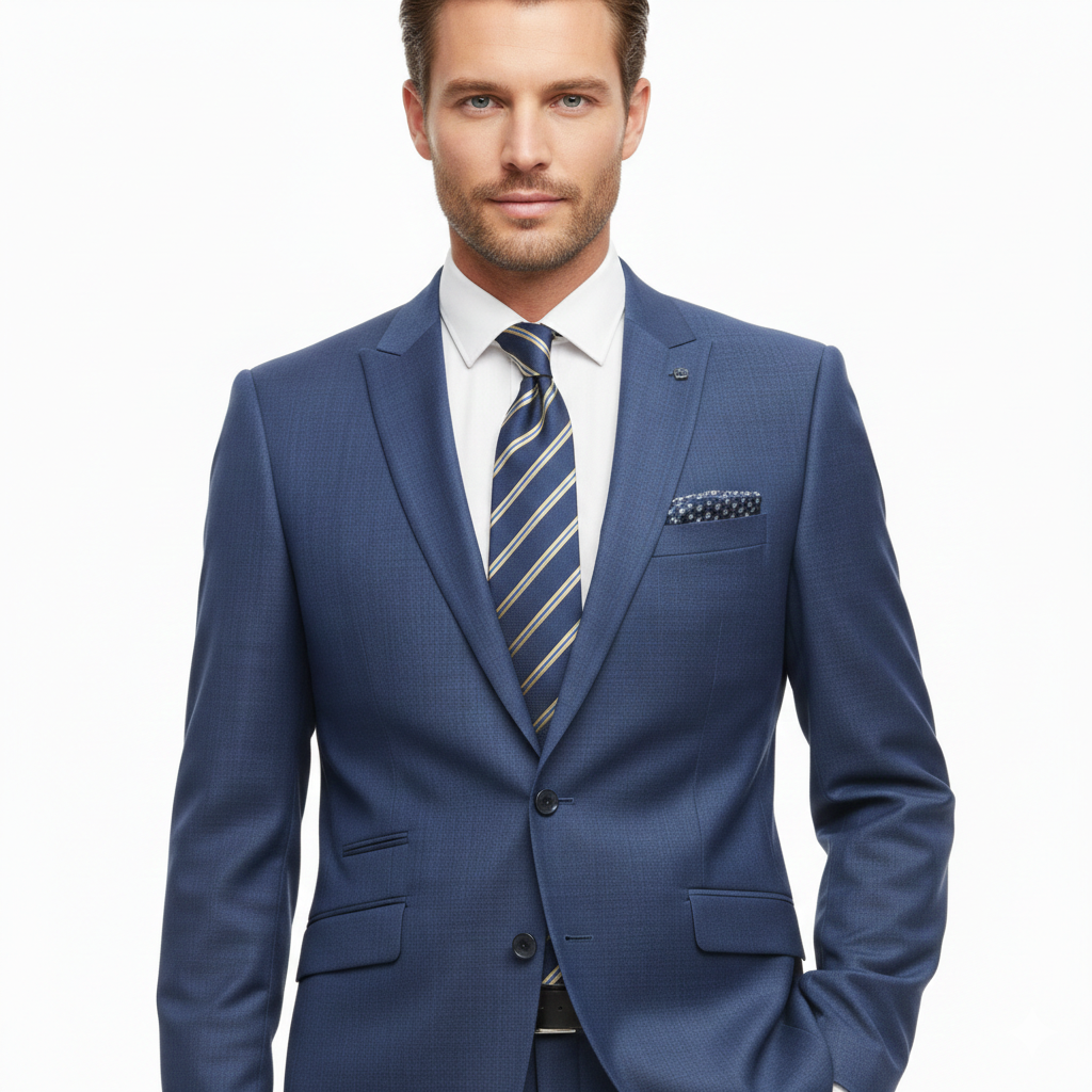 Traje chaqueta solapa falso liso, un elegante pantalón, corbaton rayas pañuelo a juego.